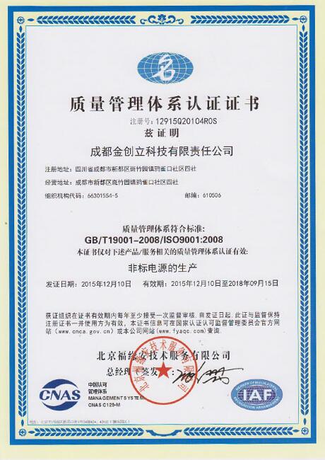 成都金創立科技有限責任公司成立于2007年,地址在成都新都區斑竹園。公司主要以等離子技術研發、應用、推廣為發展方向,開發、生產了先進的逆變電源、脈沖電源、真空鍍膜電源、大功率開關電源、專用脈沖電源、高壓電源和專用自動控制系統等設備。由于公司擁有多項發明專利和實用新型專利,以及公司在國內等離子電源技術方面的領先地位,成都金創立科技有限責任公司是中國電源學會理事單位。